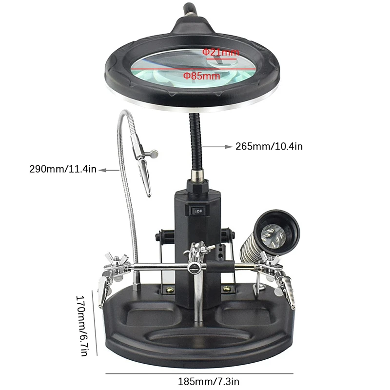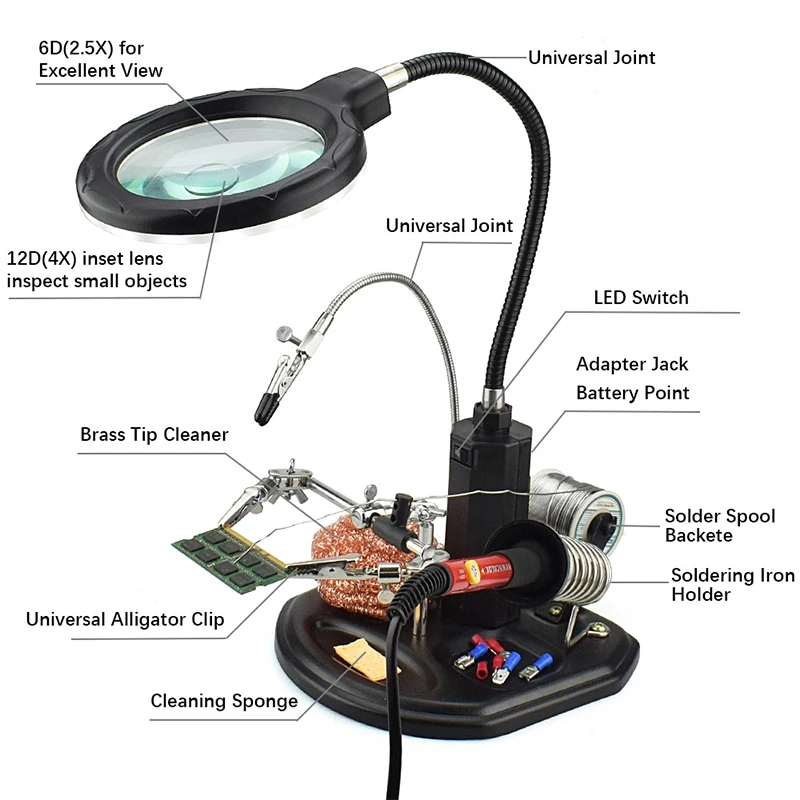 2.5X(6D)/4X(12D) 16 Smd Leds Magnifier Soldering Helping Hand Desktop Magnifying Glass Welding Repa